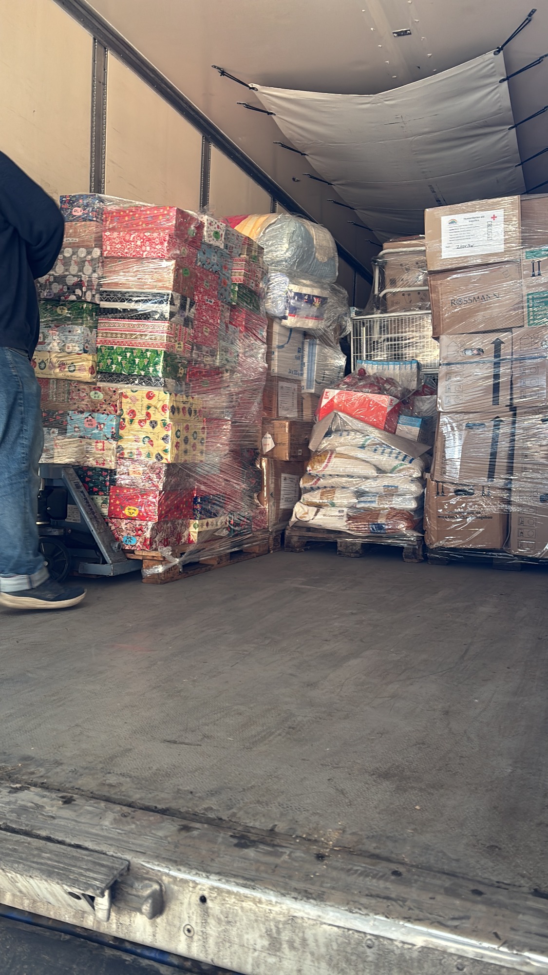 Dank Ihrer großen Spendenbereitschaft können wir vielen Menschen in der Ukraine helfen. Am Ende unsere Spendenaktion hatten wir über 4000 Kg Lebensmittel, viel warme Kleidung, Decken, Bettwäsche und natürlich die vielen von Ihnen gepackten Weihnachtspakete auf 30 Paletten gepackt und am 30.12.2025 mit dem LKW Losgeschickt.
